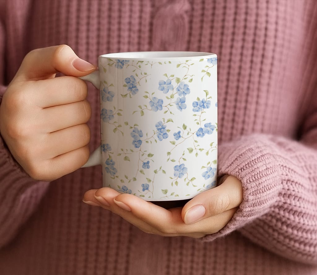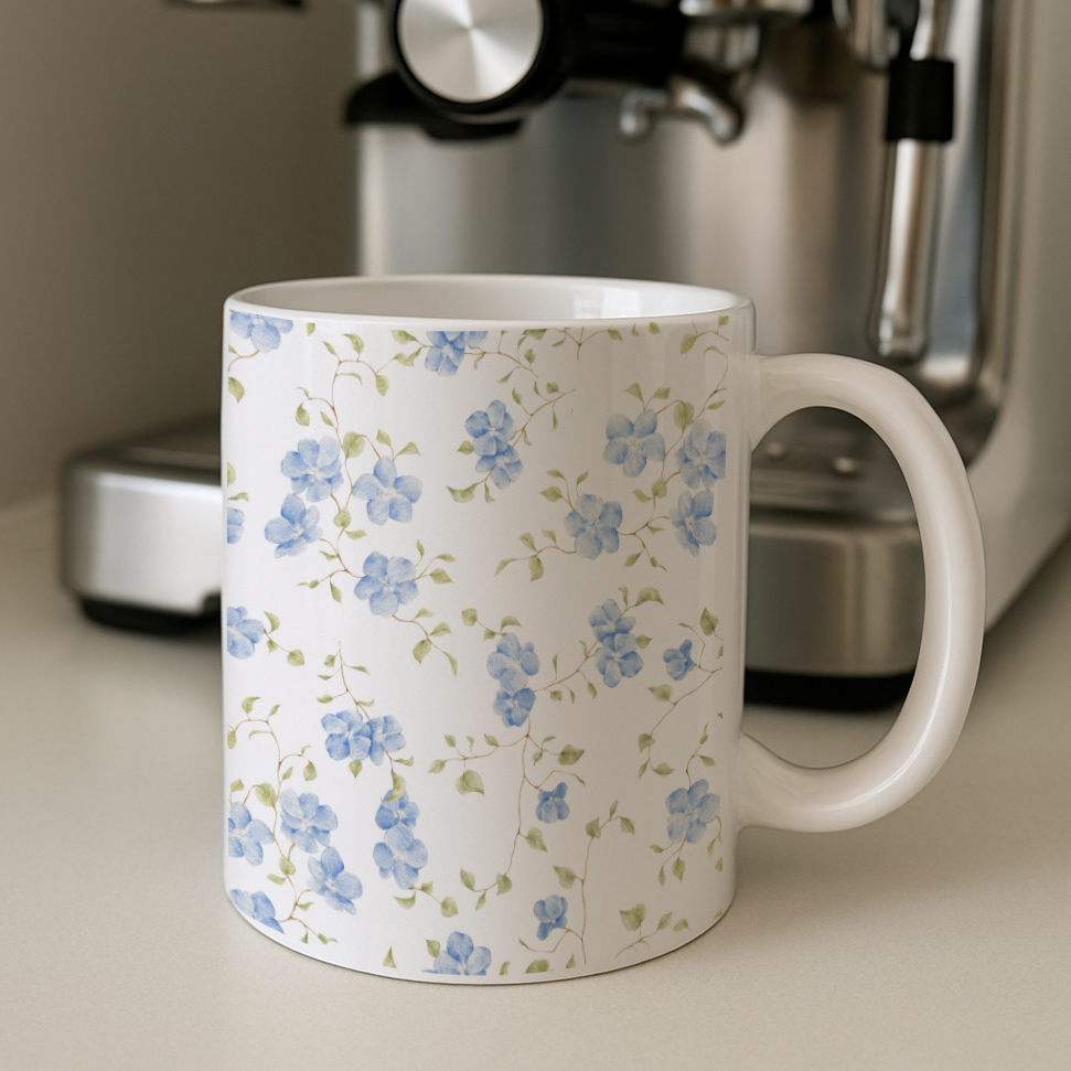 Start your mornings in style with the Blue Blossom Mug β where calm meets charm. Designed with soft blue floral patterns on a glossy white ceramic base, this mug brings a touch of elegance to every sip. Its 11 oz capacity makes it perfect for your coffee, tea, or any comforting drink. Packaged beautifully in a box, itβs ready to gift or cherish every day.