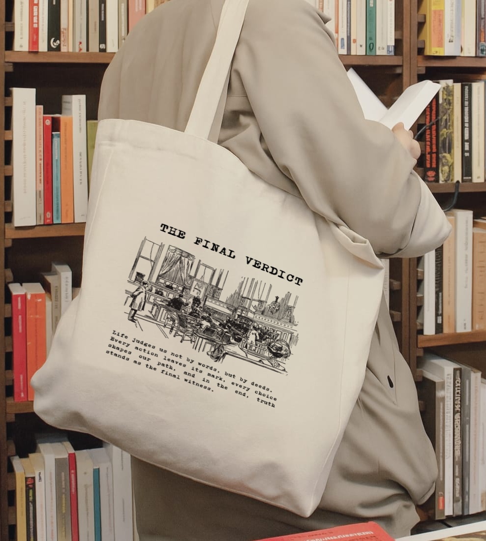 Perfect for those who love designs that speak depth, emotion, and meaning, this tote blends artistic minimalism with storytelling. Whether you’re heading out or simply expressing your unique vibe, this design reminds you that the final verdict lies within your choices.