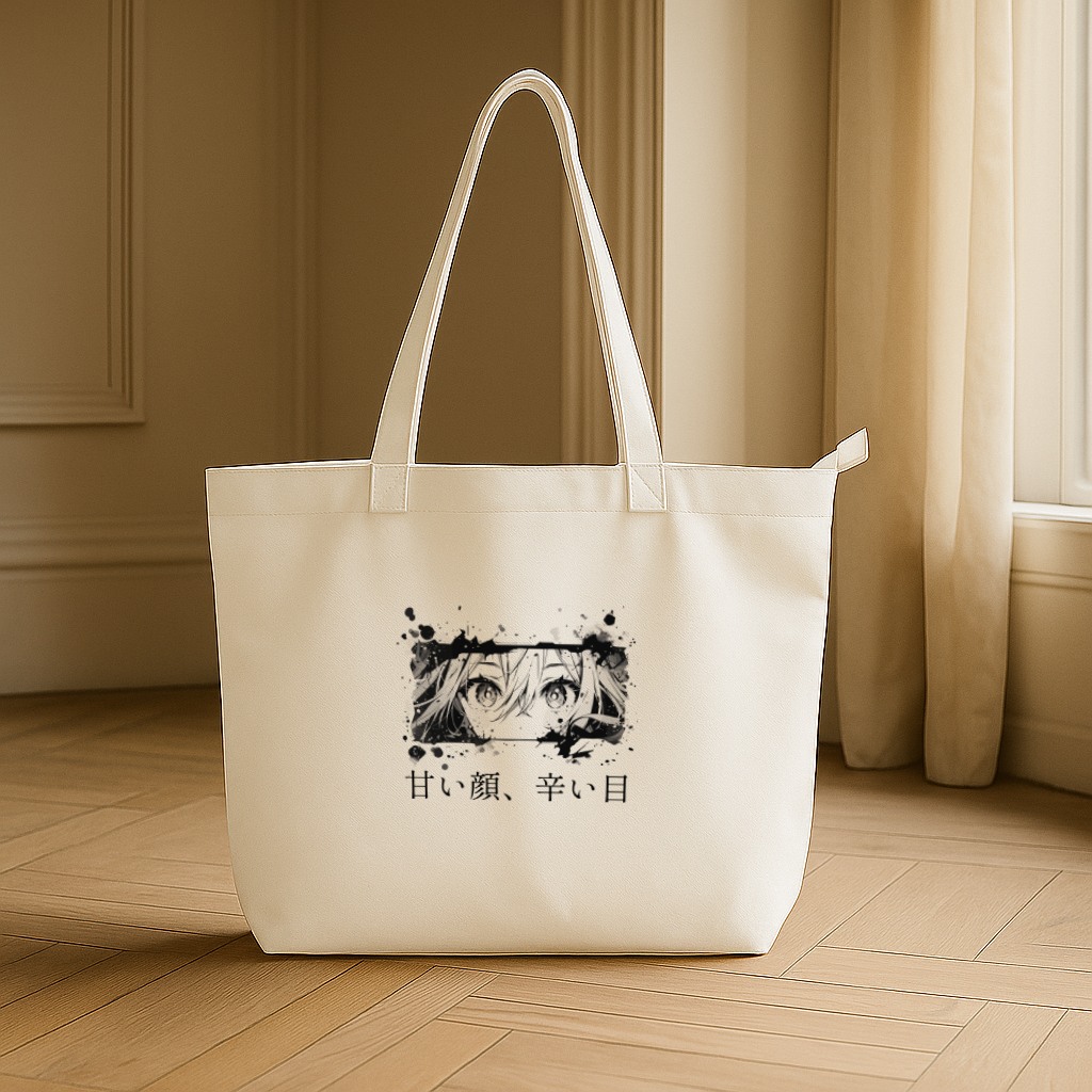 The Piercing Gaze Tote Bag brings a story of contrast — soft yet strong, calm yet captivating.