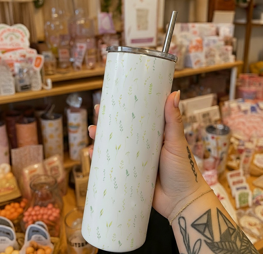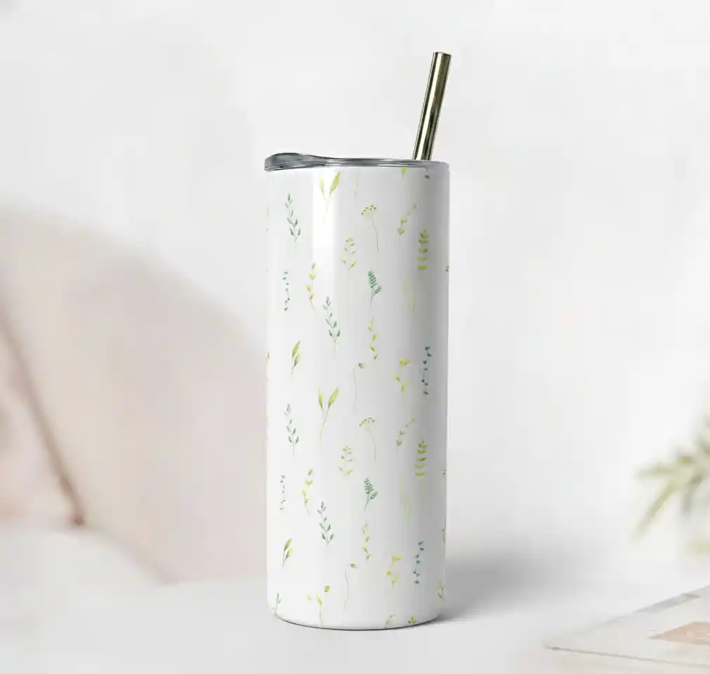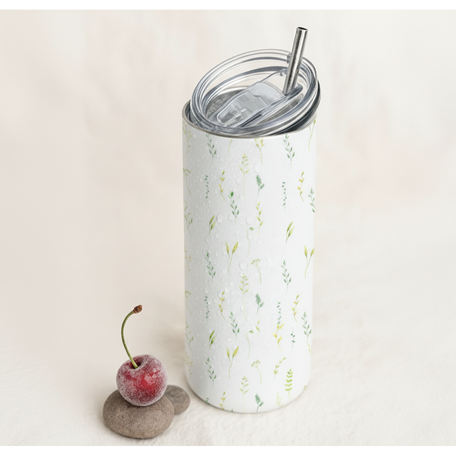 Carry a touch of nature with this 20 oz glossy tumbler 🌿 featuring delicate leaves and wildflowers on a soft white background. Fresh, minimalist, and whimsical!